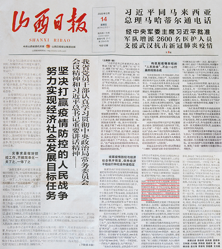 《山西日?qǐng)?bào)》報(bào)道西建集團(tuán)為疫情防控助力捐款100萬(wàn),目前已累計(jì)捐款達(dá)245萬(wàn)